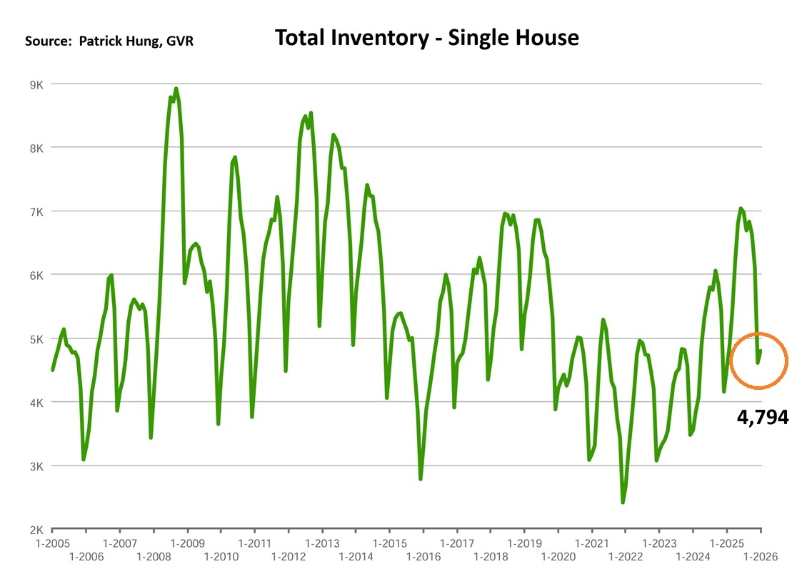 1. The Vancouver real estate market started off 2026 with the same results as last year. January had the third lowest sales for the month in the past 25 years, and supply was the highest supply for January in a decade. To put it into perspective, we currently have 11 months of inventory, and in a balanced market, that would be 5 months. We are now at over double of that in supply. It's evident that buyers continue to hold off in the face of uncertainty, and Sellers continue to jump in to liquidate. In the current market where Sellers need to sell first before buying, and when there's little to no buyers for their homes, there's simply no churn to the market. If one deal moves, three others move. Entry level homes are still in demand and can sell if priced sharply. However, lower price pressure remains for everything else. In my opinion, it will take a minimum of 6-9 months for the market to digest the current surplus in supply. That is, if the Canadian economy deteriorate further.